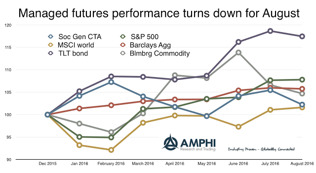 While general returns may be clustered, a look at individual managers will find 2016 as a great year for many managers who have generated double-digit returns. The averages of an index will hide the good managers. A quick survey from last month using CTA Intelligence data of the top 40 largest managers showed 18 or just under 50 percent with double digit returns. The upside opportunity for double-digit performance from medium and small managers seems to exist in the same proportions albeit with wider spread.