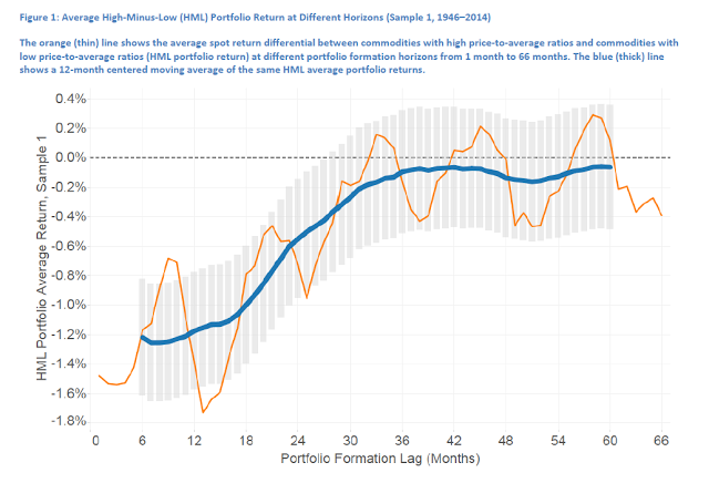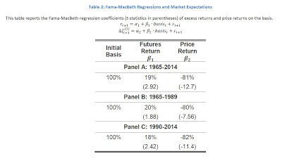 The only difference between the cash and futures prices is with the basis, which measures the link between the cash and futures, so this seems to be the natural place to look for why these differences between spot and futures exist. The researchers replicate earlier work by Fama-French to show that there is a risk premium in futures which could be an explanation for these results.
