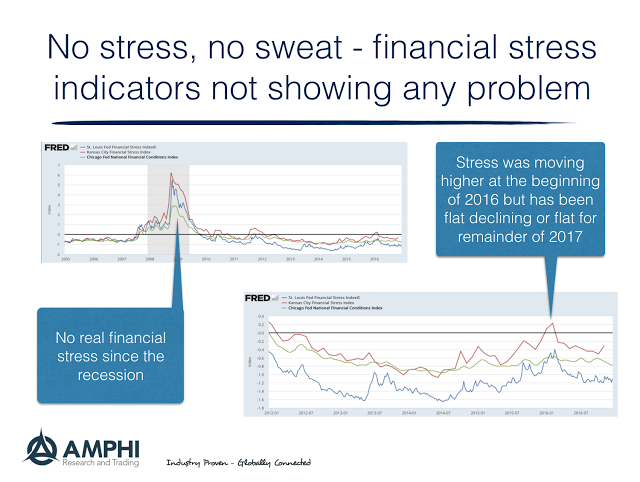 Don’t try and call the direction of the markets with some forecast which will most likely not come true. Decide the environment that we live in and determine what will be the best portfolio to take advantage of it, or as I say often, “You cannot tell where you are going until you know where you are.” A key for knowing your economic location is through determining whether there is financial stress in the economy. Stress leads to change. When stress increases or falls, investors will become more risk averse or risk seeking. It is a driver of volatility.