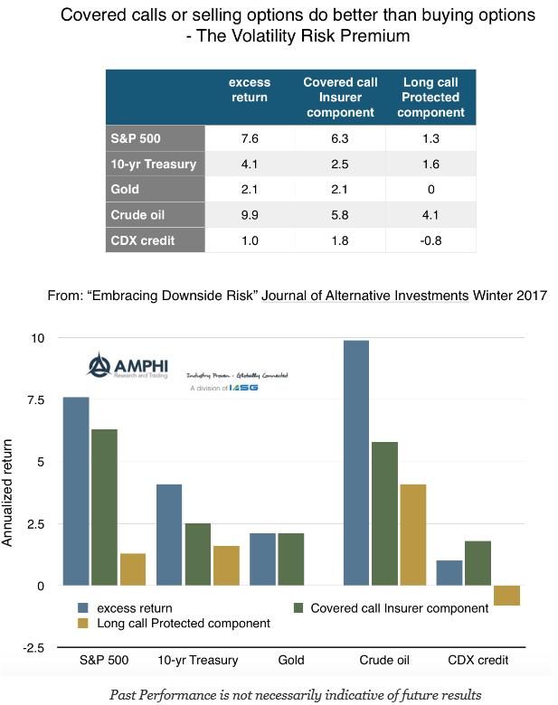 The authors find that in a set of cases across a number of assets classes over a long time horizon, the compensation for being an insurer is significantly higher than a protected position. The covered call or naked put excess return is not close to being the same as a protected position. The market prices downside risk greater than protected upside components. So maybe an investor should be willing to provide this insurance if you can avoid the really “bad times”? You are getting paid well to provide the insurance in the option markets.