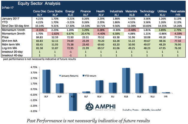 The oil sector reversed some of the strong gains over the prior to months as more range-bound oil and lower gas prices were discounted in these stocks. The largest gains were in materials and consumer discretionary which suggest an uptick in economic growth. Technology was also a strong sector winner while rate sensitive sectors showed only modest gains.