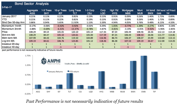 The bond sector was mostly flat for the month with the largest gains in non-dollar developed and emerging market bonds. However, these gains were related to the dollar decline which represented most of the return move.