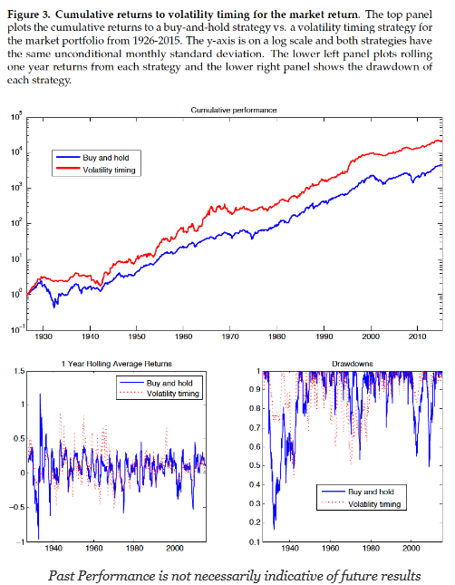 This is at odds with the conventional wisdom of some in finance who believe you must be in the market during risky periods like a recession to gain extra return. You get paid to take risks during periods like a recession. This new research says that it does not matter when you invest in the business cycle. Managing risk will improve performance, and that means cutting exposure when volatility is high. Timing market volatility will help any investment strategy because volatility is generally independent of return. Put differently, if you control the risk, you will be better off versus a simple buy-and-hold for a given factor exposure.