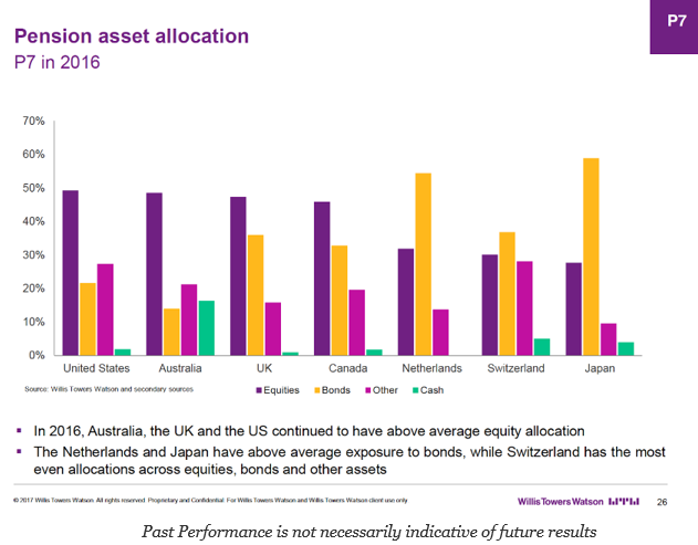 My focus on reading these surveys is generally on the asset allocation issues for pensions where we see some major differences across countries. Foremost is the plain fact that most pension hold less than 50% of their assets in equities. The impact on fixed income from yield changes is still the main driver of performance. Pension will continue to be faced with lower returns with the current low rate environment.