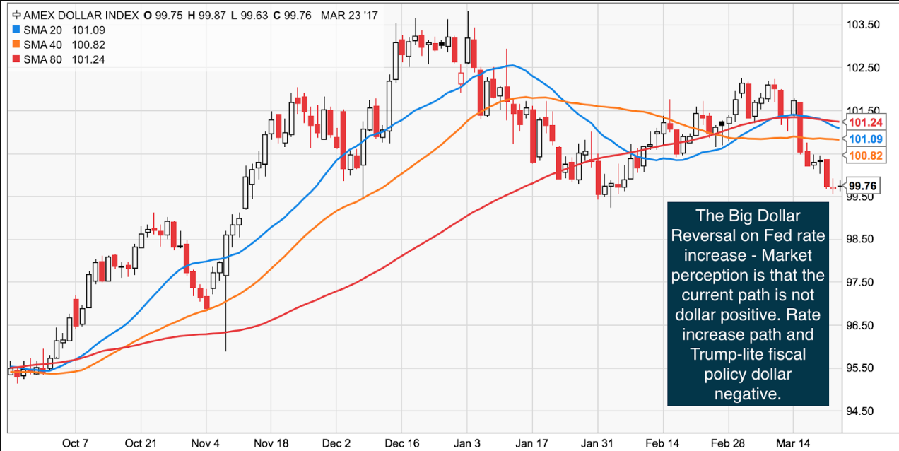 This is why heuristics and simple rules may be helpful. As a first pass, the price trend may be the most important indicator because it is the weighted value of all beliefs and opinion. It is the aggregation of all views on relative price and relative emphasis. If the weighted opinion is moving the dollar lower, it is sending us a signal on underlying economic variables.