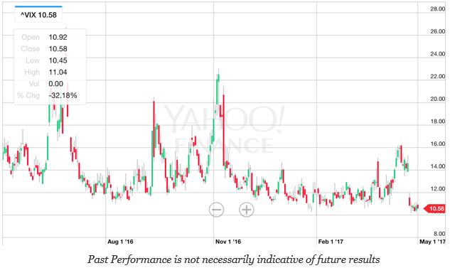 The question in not whether the VIX will change, but rather how long will the low volatility persist. The policy uncertainty index has fallen since the Brexit and election highs over the last year, but it is not at significant lows. The latest GDP numbers for the first quarter are lower than expected. Lower end economic performance usually is associated with higher volatility.