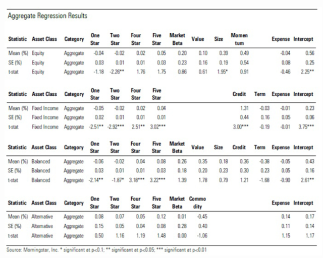 Can this be related to choosing managed futures or alternative investment funds? As a heuristic to help identify potentially better funds, the rating system may be a useful first pass. It is a not a substitute for more exhaustive analysis but there should be strong reasons to bet against the best and worst funds regardless of asset class.