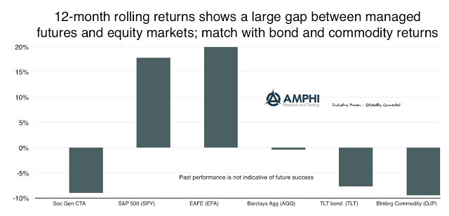 Managed futures for the last 12 months have matched the performance of bonds and commodities. This has made some investors cautious about adding managed futures exposure, but a turn in trends and sentiment may reverse performance gaps. We have found that strong price reversals across multiple asset class may first pull performance lower but may then lead to higher returns over longer periods if these new trends show persistence. Market divergences start with a reversal of the status quo.