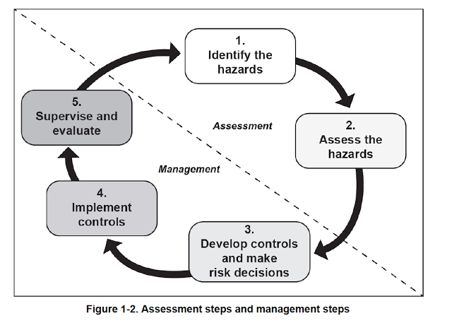 The US Army five step process breaks risk management into two major parts, assessment and management. You need to measure risks, take actions, and then evaluation in a continuous loop. Feedback and reassessment is critical to the process.