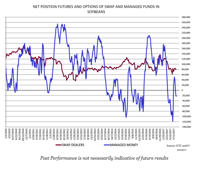 The soybean chart of managed funds positioning provides a good story of when money was getting short and when it was reversing in response to a price increase. By itself it is not a good signal but with price, positioning information can reinforce what is happening in the market. This is especially true at extremes. Of course, given the availability of the data, many simple filter tools like the commitment of traders have to be recast in order to create an edge.