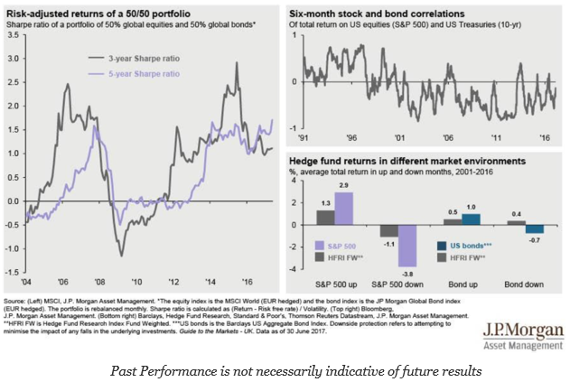Hedge fund managers need to show their value-added in an environment where the negative correlation between stocks and bond has allowed the two-asset class blend to do an effective job of diversification.