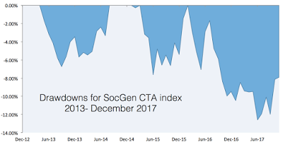 Managed futures, as a hedge fund strategy, have moved off of its max drawdown since June, its worst drawdown in the last five years, as measured by the SocGen CTA index. For some investors this type of drawdown means an exit from the strategy; however, some of the broader data on manager selection suggest a different approach. The idea of being careful about making investment decision based on a drawdown is consistent with the mean reversion performance analysis of winners and losers.