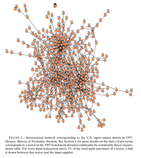 The idea of networking effects is apparent across significant amount of macro/finance research. While most of this work has focused on macro prudential and systemic research, it has impact across all macro thinking. See The Network Origins of Aggregate Fluctuations to get a flavor for this type of research.