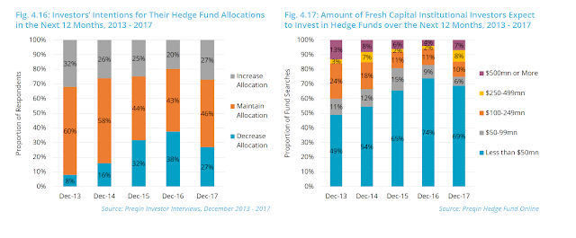 The recently released Preqin Investor Outlook, Alternative Assets, H1 2018 describes the demanding environment for hedge funds. Investors do not believe hedge fund are meeting their expectations, allocations may be smaller, flows may be reduced, and there is a desire for better alignment of interests. Of course, there is also the desire for more performance. To address these issues hedge funds will have to change.