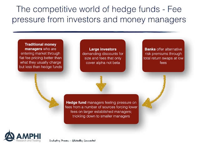 The key forces today are not from within the hedge fund universe albeit that is happening, and the forces are not just from investors albeit they have gotten smarter and have demanded more from managers. Banks are the key competitors through their swaps desks which offer alternative risk premium indices.