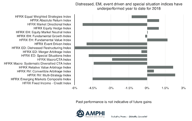 With over half the year done, 10 strategy indices are negative and 7 are positive. The average for the negative strategies is just under 4 while the gaining strategy indices posted an average of 1.25 percent. For the negative strategies to move into positive territory, there will have to be at least a one to two standard deviation positive event over the next five months. This is possible but will require some market dislocations that can be capitalized by hedge fund managers.
