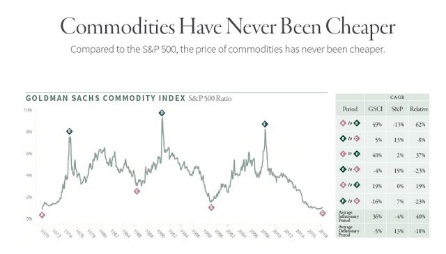 More analysts have talked about commodities being a good bet versus equities, yet care is needed in finding the right vehicle. See the latest chart from Goehring and Rozencwajg.