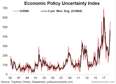 The short-term link between policy uncertainty, economic data, and financial markets seems to be highly variable, but China policy uncertainty has not dampened but is actually on the rise. The China stock market reflects this uncertainty, but the rest of the world still does not seem to focus on the true impact of China on global financial markets.