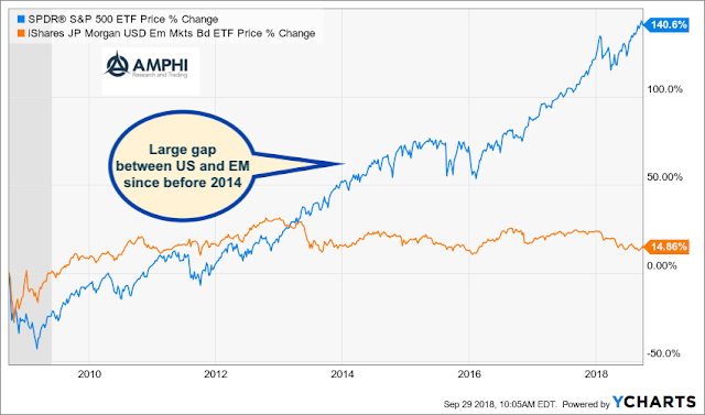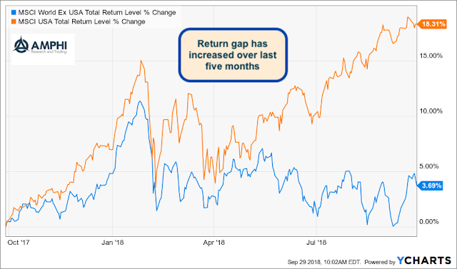 It was Aristotle who coined the phrase, “Nature abhors a vacuum”. An investment equivalent is that markets abhor divergences, which leads to the “Great Convergence Trade” for equities. Unfortunately, convergence often does not play-out as expected. A classic convergence will be for US equities to decline after this period of overheating and the rest of the world to gain on the switch to cheap undervalued equities. Certainly, this may be a good time to selectively increase non-US equities. Nevertheless, investor could face two declining markets under this convergence scenario. A lesser of two evils convergence does not seem like a path to riches. Without a growth catalyst for the rest of the world, we expect this gap to be maintained.
