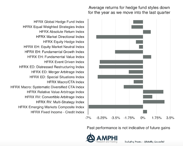 With a quarter to go in 2018, there will have to be more aggressive risk-taking to get hedge fund managers in the black. While the average hedge fund may be dong better than long bond funds, most investors did not buy hedge funds as bond substitute but as alpha generators. Research on money managers show a change in behavior in the last months of the year based on relative performance. Winners will take risk off the table and losers may push their risk exposure.