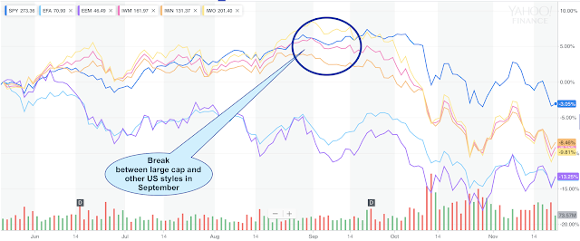 Technical – There have been some key periods of divergence between equity style sectors. International and EM have actually been a place to hide in the near-term