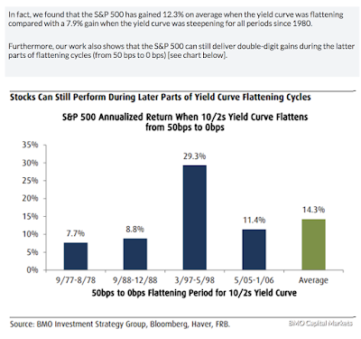 From BMO, equities can do well in a flat yield curve environment.