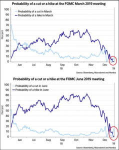 It is clear that the market has been expecting a change in Fed behavior from the policy of staying the course, just look at the probability of a rate hike since November. The market has believed that the Fed Chairman Put is still alive and well.