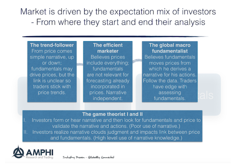 The narrative-driven investor thinks of the market as a game of expectations. Prices are a weight of different expectations which may be driven by stories, fundamentals, and the herd. Finding the narrative story that will push prices creates value. It is a “beauty pageant” of what investors think is the driving story for returns. From this story, investors look for confirming evident to support their narrative.