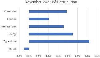 The Discretionary Global Macro Program generated a 9.3% return, net of fees, in November 2021, leaving YTD performance at -1.4%.