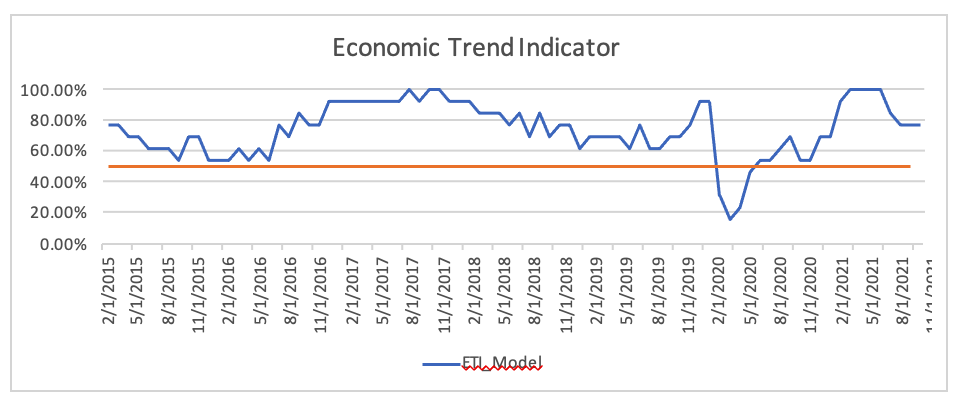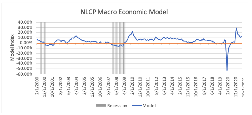 We don’t usually include this graph, but this shows the individual components that go into the model. It shows that 77% of the variables are positive. Usually, when this dips below 50%, the NLCP Economic Model goes negative. So, we watch these things together.