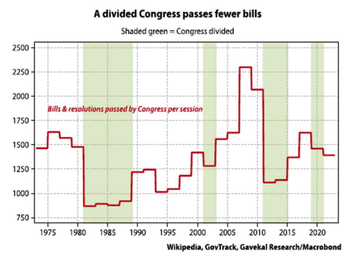 As you can see from the right, a split Congress normally leads to inaction. Additionally, Congress had become accustomed to borrowing money for essentially zero interest in the past few years. That is clearly not the case any longer. Higher interest rates will force the government to tighten the purse strings if only a little. All of that should serve to support the Treasury market in the coming months.