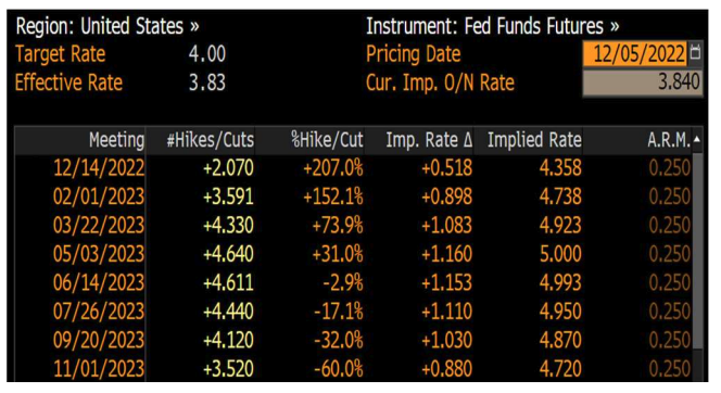 As noted in last month’s commentary, there is strong reason to believe many of these supportive factors are starting to roll over. Last week’s ISM manufacturing index showed the first contraction in US manufacturing since mid-2020. Energy prices have rolled over sharply, and there is an open debate about whether OPEC may need to cut production to match weakening demand. Bank lending standards and overall financial conditions in the US and the global economy are tightening. And last but not least, the Fed has clearly indicated a slower pace of rate hikes ahead and even a potential for a pause in 2023. As upcoming economic data is likely to weaken further, in my opinion, I expect the Fed to amplify its forward guidance for a pause.
