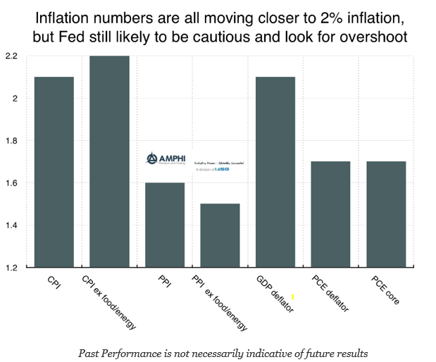 Current inflation numbers are all moving closer to 2%, but there is no special policy action from hitting or exceeding this rate. In fact, a cautious Fed is more likely with the most aggressive forecast being 2-3 rate moves. The Fed has not followed a mechanistic policy even though they have stated they are “data driven”. The most likely forecast will be to fade the earlier musings of the Fed.