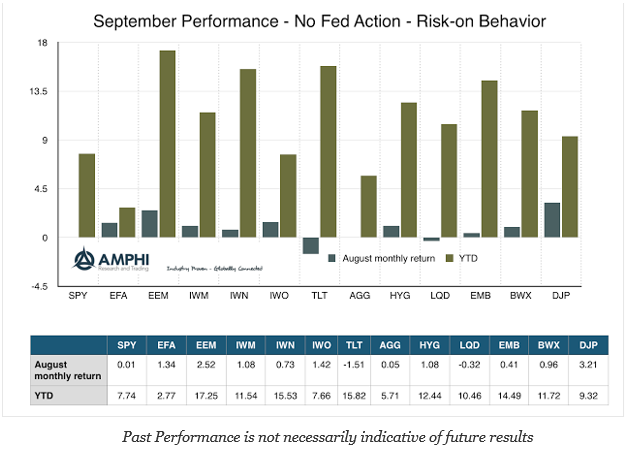 Was investing for the month so simple? The Fed did not take any action, albeit the threat that they are getting close, and the markets rallied for the month. Fade the Fed regardless of their speeches about wanting to move rates higher. We think this strategy may be ending in December, but right now investors were again rewarded for not believing any threats of Fed action.