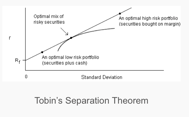 One of the greater principles of investment finance is Tobin’s separation theorem which is a powerful simple tool that can be used for any investment portfolio, but is especially useful when thinking about managed futures and alternative risk premiums. (Robin Powell reminded me of Tobin’s contribution in his essay, Can you really stomach the risk you’re taking?) There is a tremendous amount of useful investment advice through just applying the simplest of concepts.