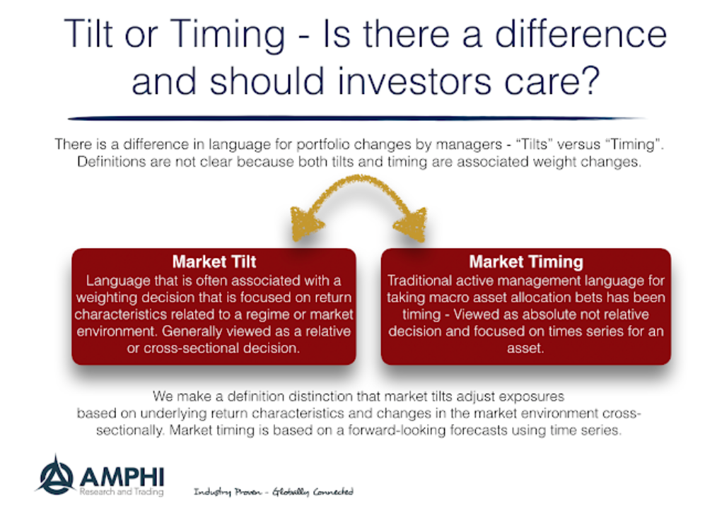 At a recent conference, I heard a large money manager say the following, “We do not market time, but we do take market tilts.” Unfortunately, no one was able to ask the manager to clarify the difference between tilts and timing. Aren’t they both forecasts?