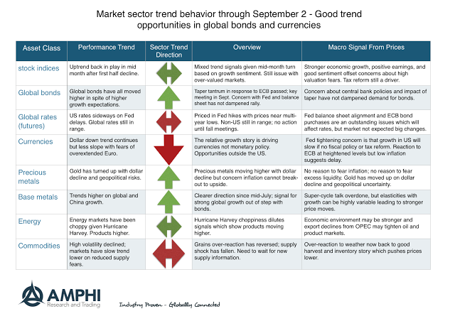 Global returns in August were unusual because of the bipolar behavior across market sectors. The strong performance on the long-end of the Treasury curve coupled with the negative returns for small cap and value suggests there was a flight to safety by investors, yet one the best performing sectors was the riskier emerging markets sector.