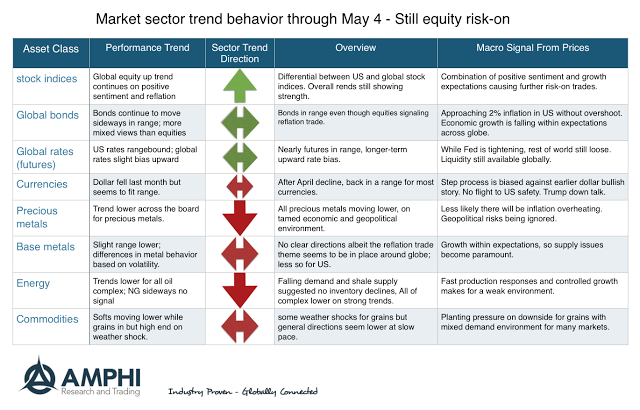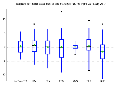 May was a mixed month for many trend-followers. Some did well while others got caught on the wrong side of mid-month reversals. The month saw a mid-month equity sell-off which could have stopped-out a number of key positions in equities and bonds. This sell-off was based on political uncertainty and not macro fundamentals.