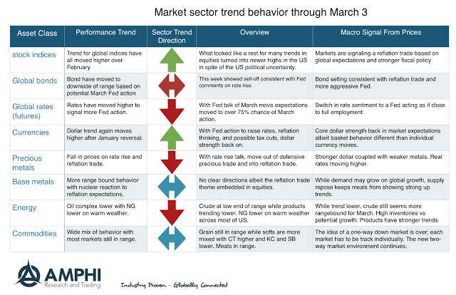 What seemed to be a slight rest at the beginning of the year has turned again to a strong equity bull market. The reflation trade is back as signaled by equity index behavior. Bonds also suggest a reflation trade given the recent talk by Fed Chairman Yellen and other officials concerning the likelihood of Fed action in March. While not a rout, bonds are also signaling a growth trade.